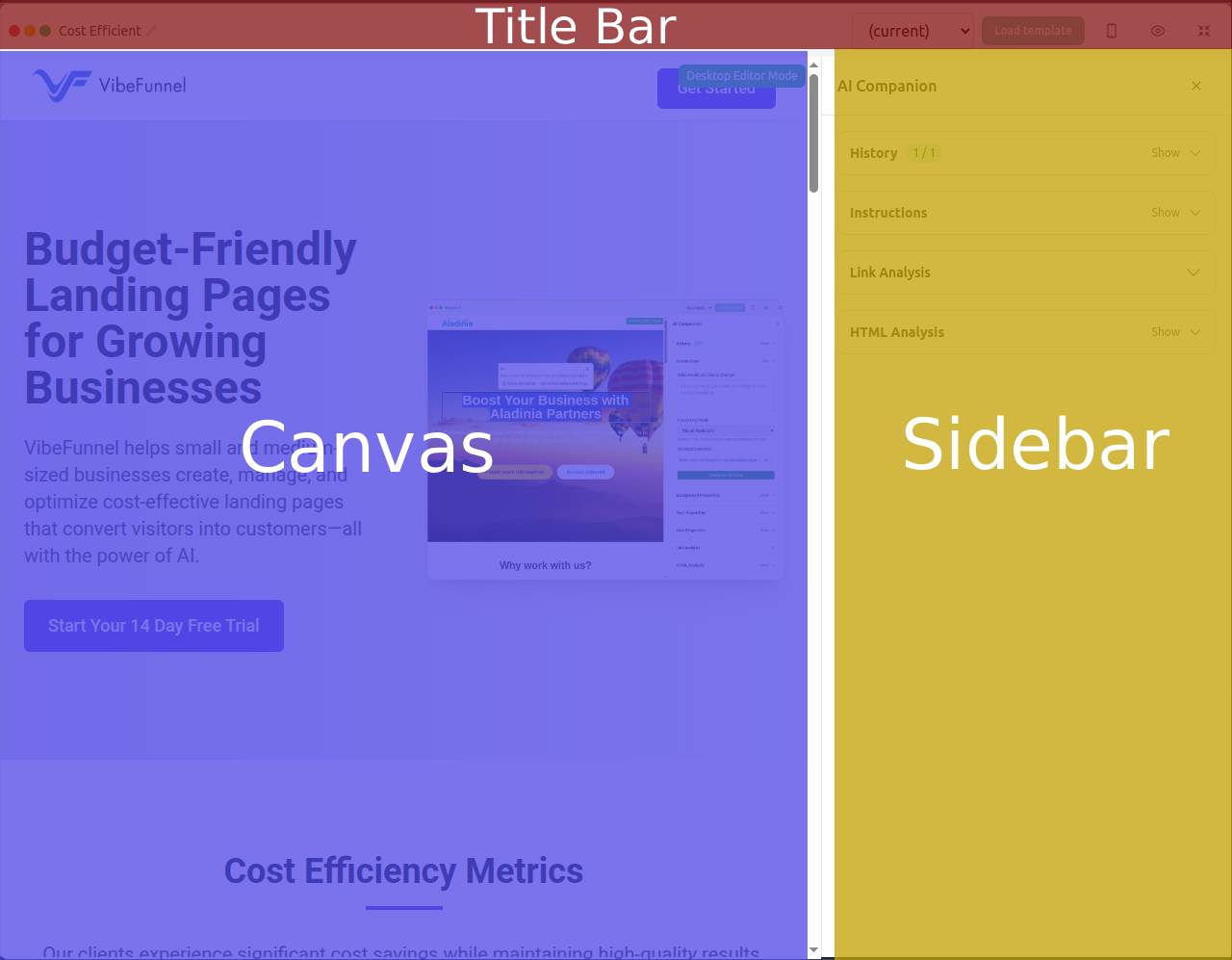 Allows for working to update your variant by selecting areas to interact with of your landing page to modify and execute changes in the Sidebar.