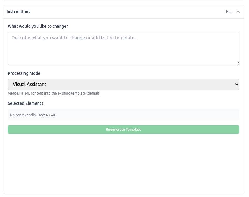 - "Modify all sections to have more padding" - the AI would only add padding to the selected section - No Context Calls - When you have not selected any elements it the instructions will reference the entirety of the page. These are limited in the quota, take longer to process