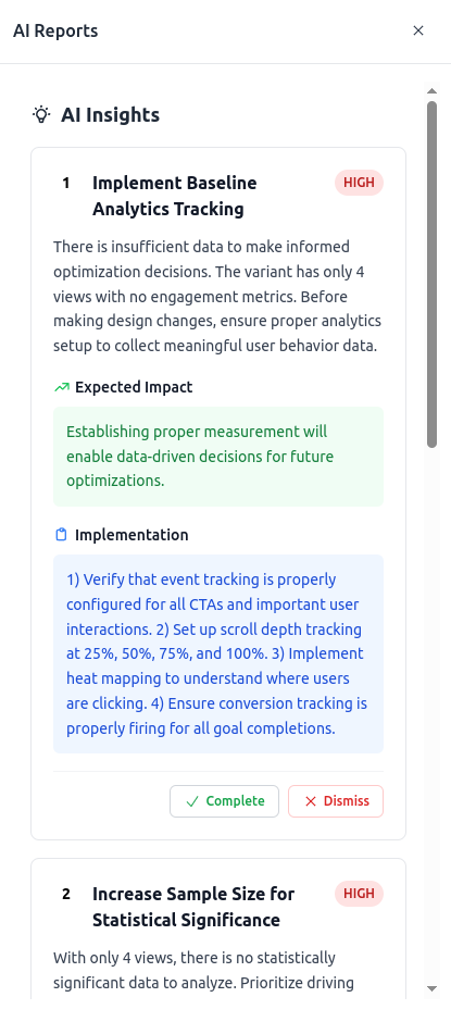 AI Reports appears for maestro level plans to help manage variants quicker. It only appears if suggestions are available and every X weeks based on the configuration of your campaign.